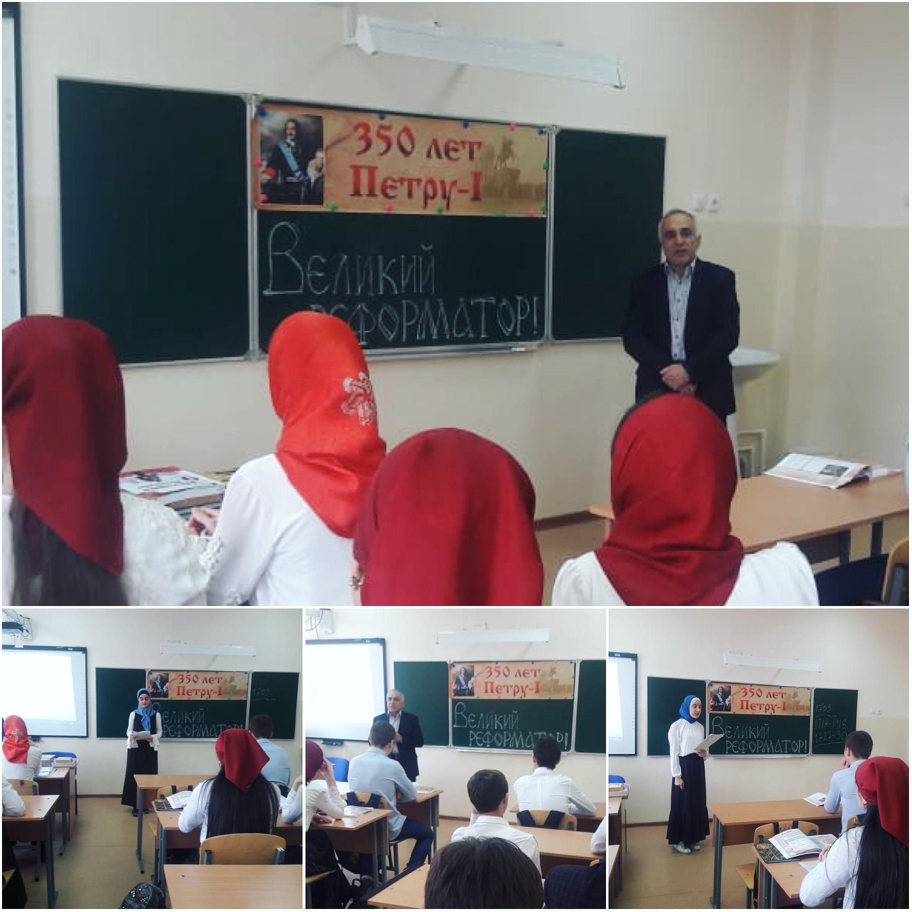 22.01.2020г. в МБОУ «Аллероевская СШ» им. Дадаева С.Р. было проведено открытое мероприятие посвященное 350-летию со дня рождения Петра 1.