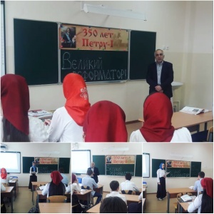 Идрисов Гудрат Афсалович (учитель истории), как большой поклонник Петра 1, познакомил детей с жизнью великого реформатора и периодом его правления.