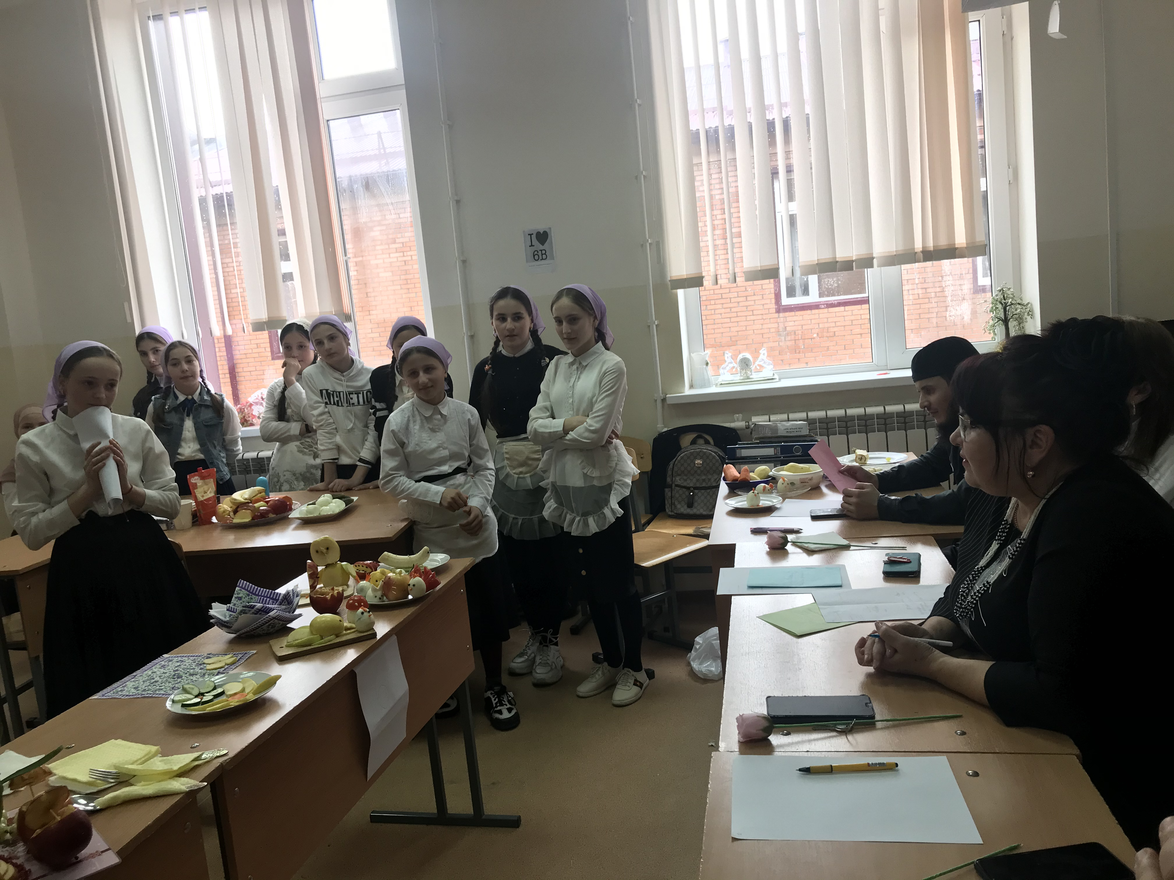 Сегодня Учительница технологии Дегиева Хеди провела шикарное мероприятие 😍Где дети 6 «А» «Б» класса делали нарезки из фруктов и овощей, показывая свое творение членам жюри.