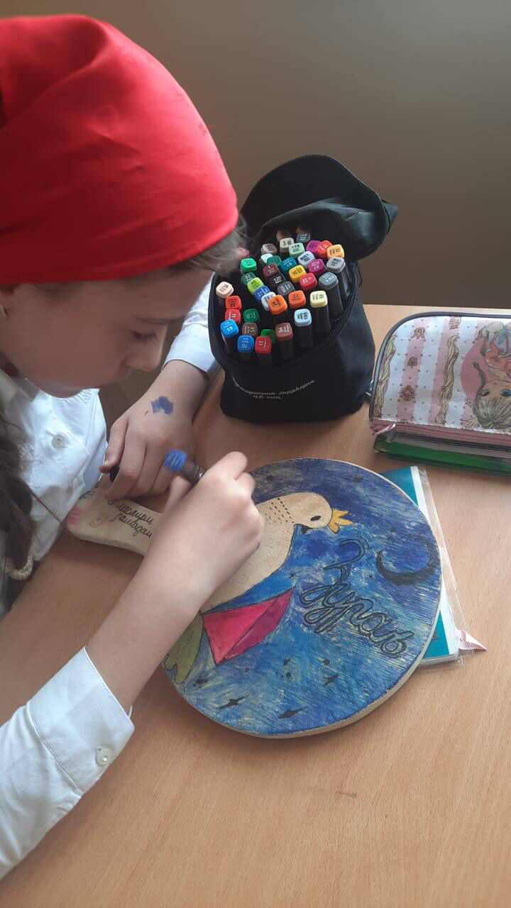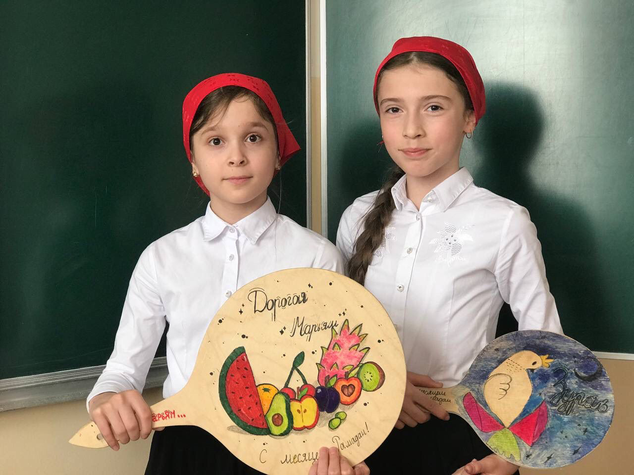 19 апреля в неделю психологии МБОУ «Аллероевская СШ» имени Дадаева С.Р учитель технологии Дегиева Хеди провела день изобразительности Ученицы 5 класса нарисовали на деревянных досках рисунки,на подарок для своих мам в честь наступления Священного месяца Рамадан. Цель урока : Воспитывать у учащихся понимание красоты и гармоничности цветовых сочетаний, эмоциональное отношение к изображаемому. Воспитывать аккуратность и терпение при нахождении и исправлении ошибок, стремление выполнить работу до конца.