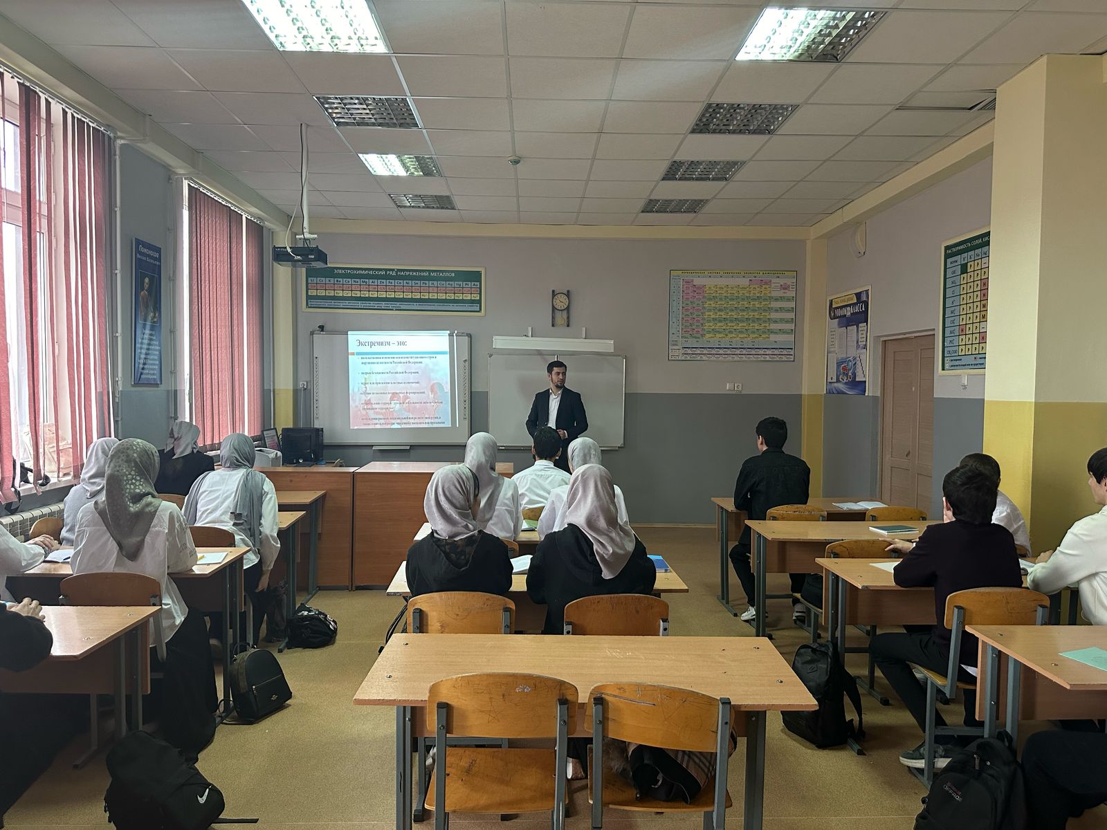 03.02.2025Совместно с сотрудниками Управления ФСБ России по ЧеченскойРеспублике проведено мероприятие на тему: «борьба с расхищениемнациональных биоресурсов».В ходе встречи со школьниками сотрудники Управления рассказали,что целью в борьбе с расхищением национальных биоресурсов являетсяконтроль, а также проведение мероприятий по сохранности национальныхбиоресурсов.В рамках проведенного мероприятия приведены примерысовершенных преступлений, относящихся к расхищению национальныхбиоресурсов, а также сроки наказания для лиц, привлеченных к уголовнойответственности за совершение указанных деяний по статьям 256 и 258.1 УКРФ.